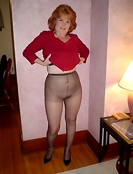 Mature amateurs spreads her legs in pantyhose